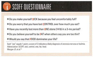 SCOFF questionnaire for screening Anorexia and Bulimia